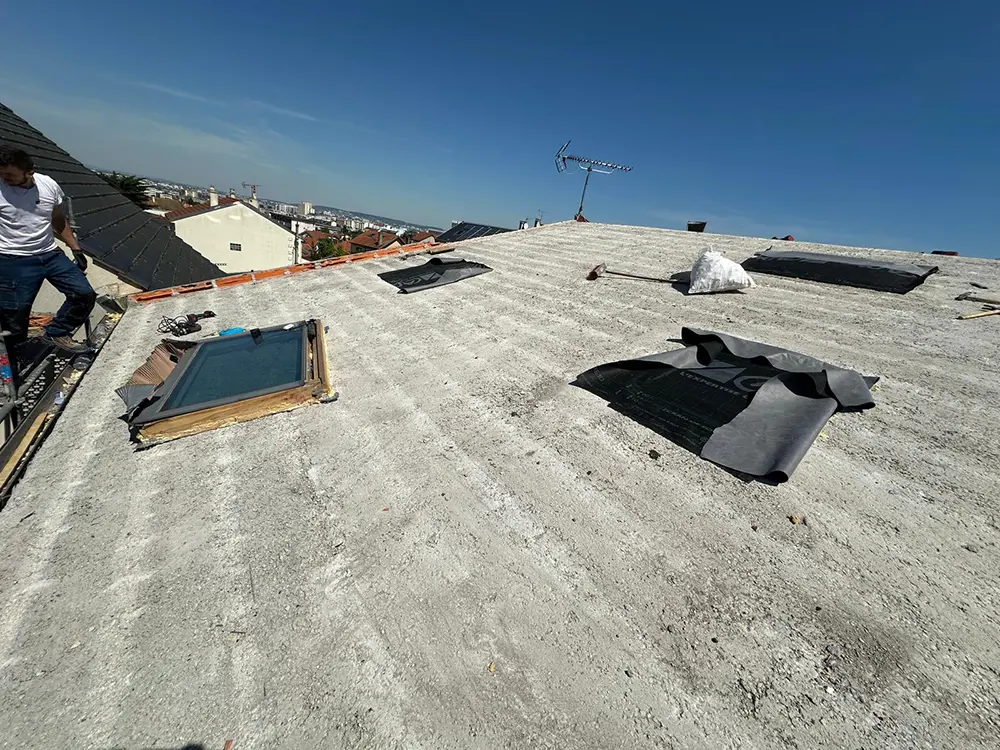 Nous avons réalisé une réfection complète de la toiture en tuiles mécaniques sur la commune de Nanterre. L’intervention a débuté par un nettoyage en profondeur de la couverture, visant à éliminer les mousses, salissures et dépôts accumulés avec le temps. Les tuiles endommagées ont ensuite été retirées avec soin, puis remplacées par des tuiles neuves, en harmonie avec le style architectural du bâtiment. Un contrôle rigoureux de la zinguerie a également été effectué, suivi des ajustements nécessaires pour assurer une étanchéité optimale. Pour conclure, des finitions soignées ont été apportées afin de garantir la longévité et la résistance de la toiture face aux conditions climatiques.